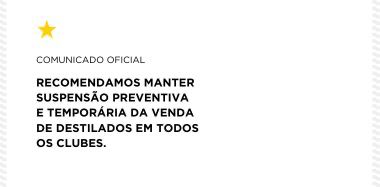 Comunicado Oficial: Recomendamos manter suspensão preventiva e temporária da venda de destilados em todos os clubes.