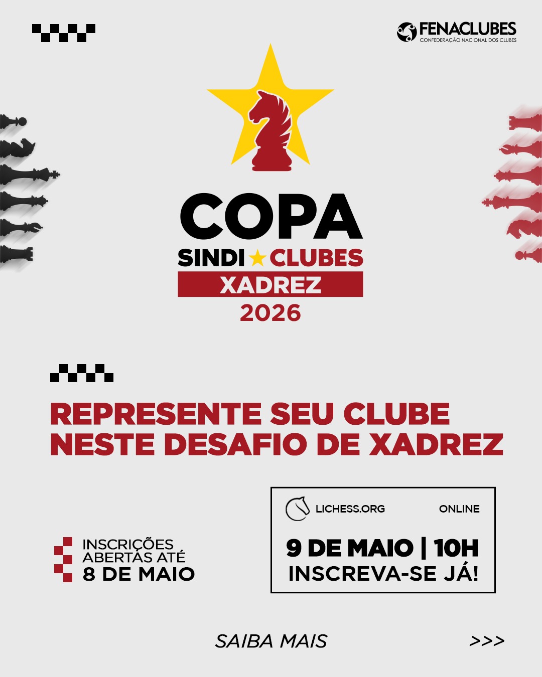A Copa Sindi Clubes de Xadrez 2026 está com inscrições abertas!