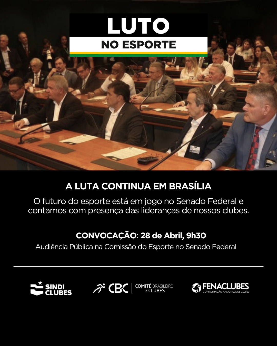 CONVOCAÇÃO: vamos retomar o movimento “Luto no Esporte” presencialmente em Brasília e a presença das lideranças de nossos clubes é muito importante!