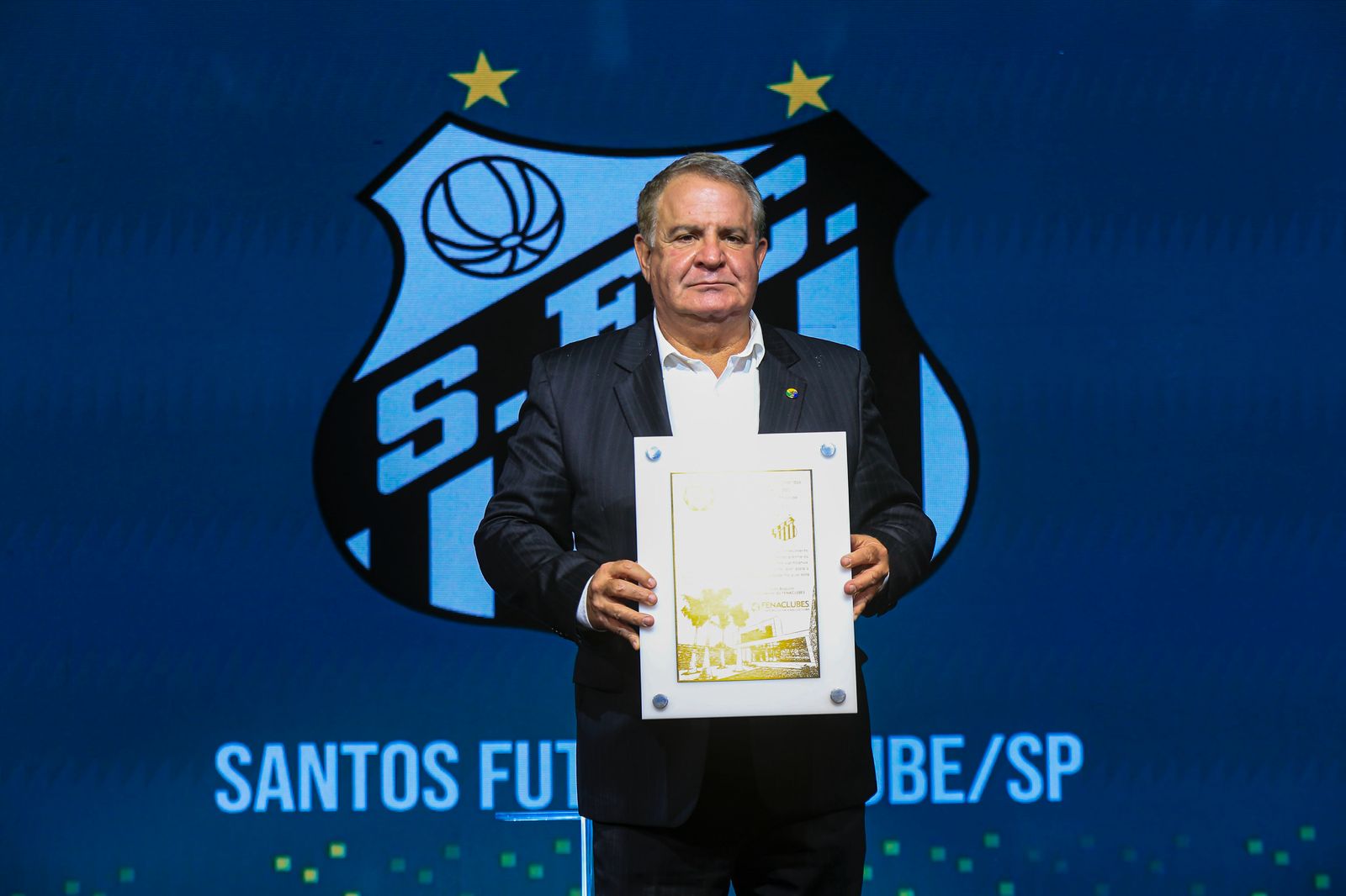 24/04/2026Nosso presidente, Sérgio Nabhan, teve a grande honra de subir ao palco do Congresso Brasileiro de Clubes 2026, em Campinas, para receber a prestigiada Placa Ouro do Prêmio Clube TOP 100 em nome do Santos Futebol Clube.
