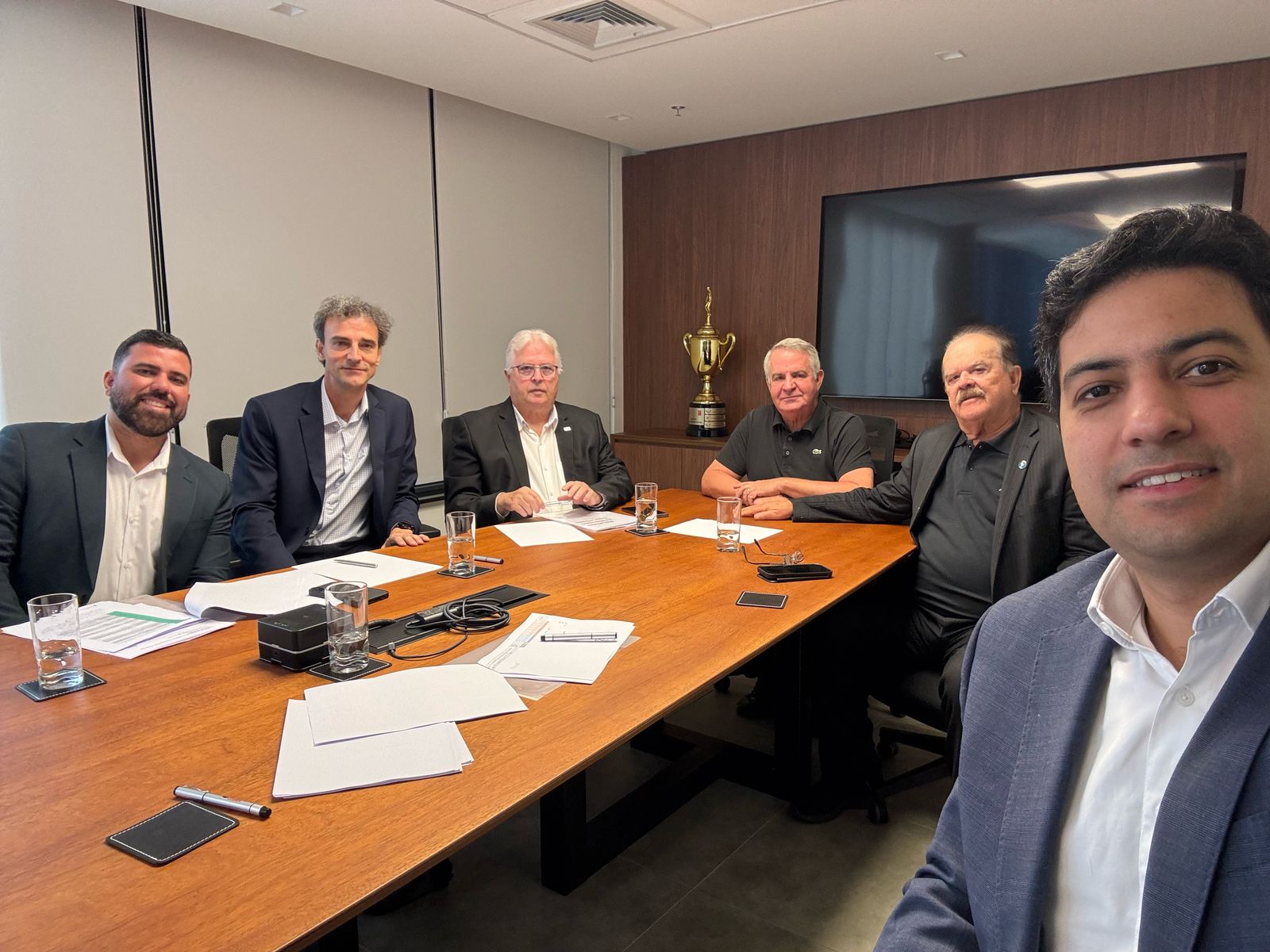 Nas fotos: Ricardo Nobre, Jurídico COB; Emanuel Rego, Diretor-Geral COB; Edson Garcia, Vice-presidente do CBC; Sérgio Nabhan, Presidente do Sindi Clubes; Paulo Maciel, Presidente do CBC; Luís Felipe Cavalcanti, Jurídico CBC.