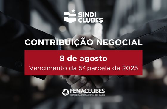 Atenção! O vencimento da 5º parcela da Contribuição Negocial de 2025 é dia 8 de agosto.