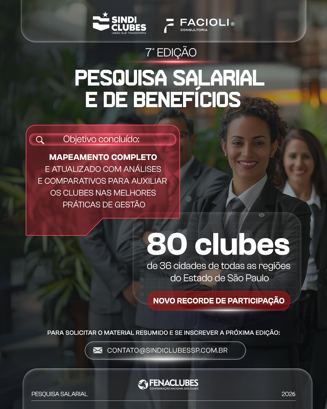 Desde 2017, o Sindi Clubes mantém essa pesquisa em parceria com a Facioli Consultoria, empresa com mais de 30 anos de experiência em Recursos Humanos e Gestão Organizacional.